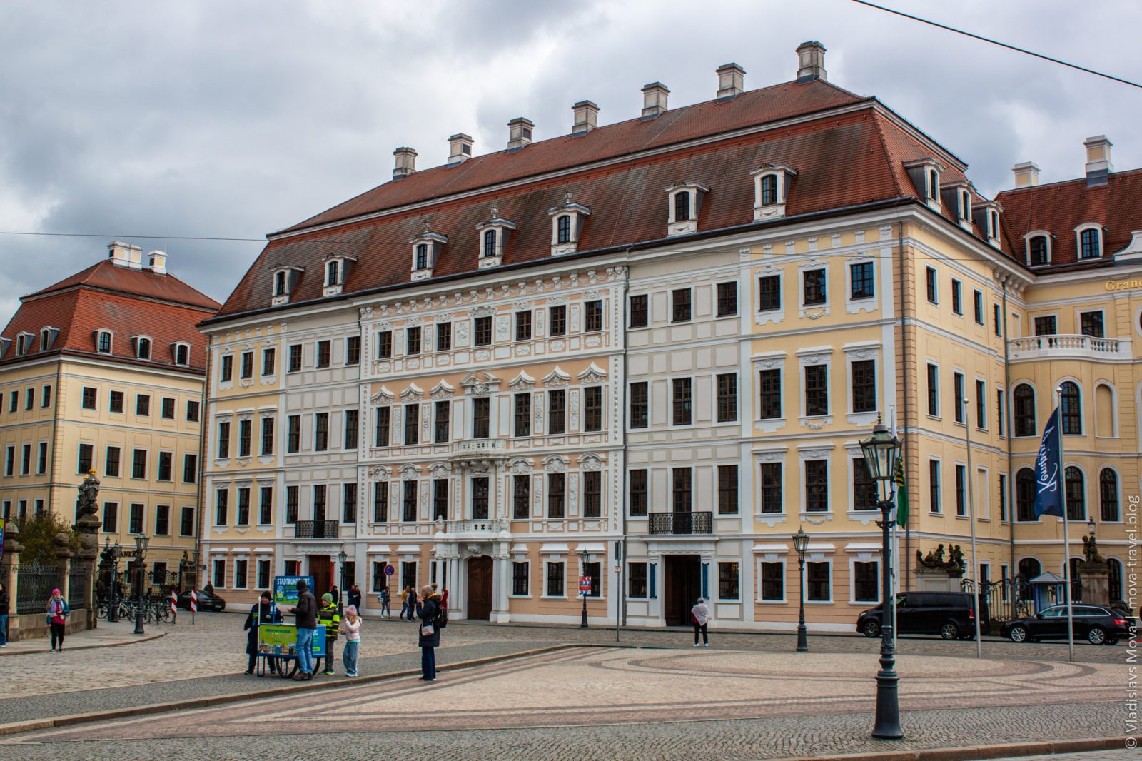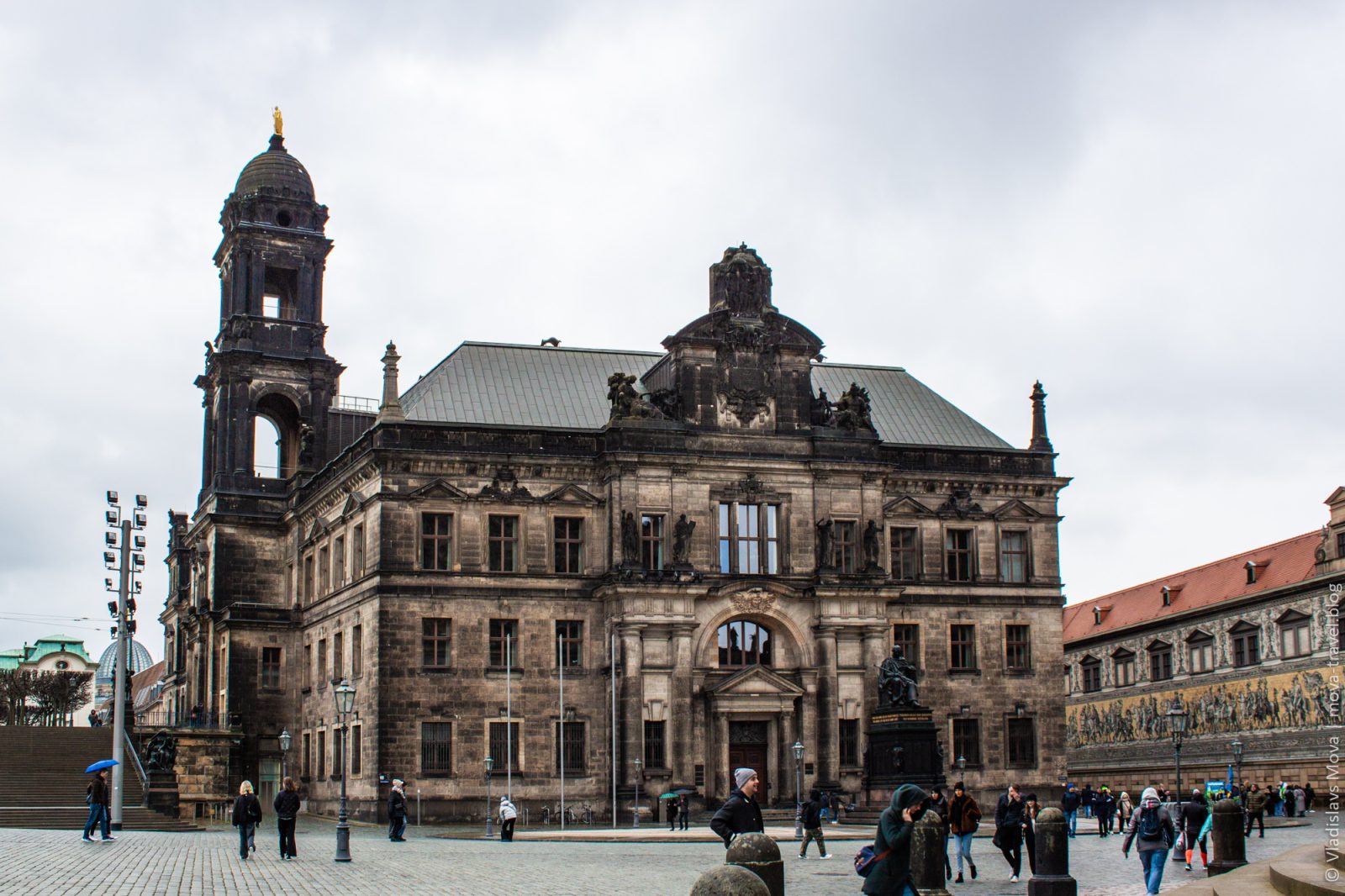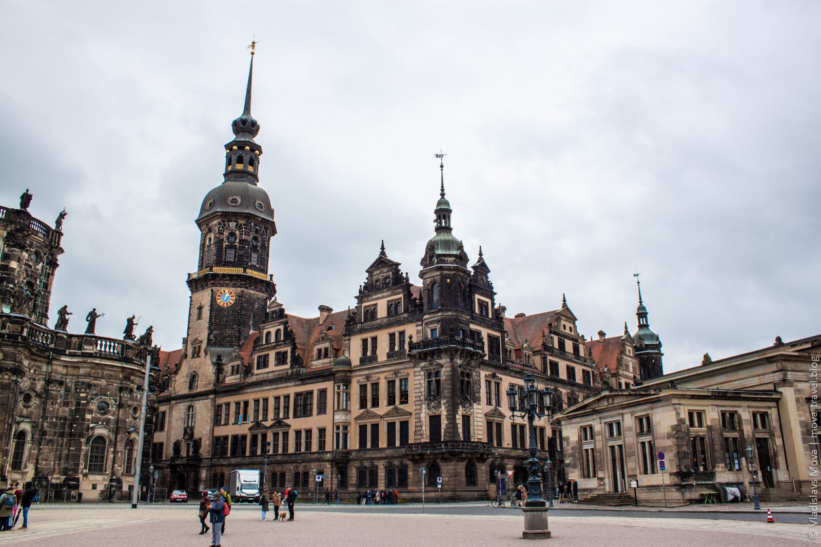 Раз церковь «придворная», то, очевидно, где-то поблизости должен быть и «двор». Так и есть: по соседству располагается Дрезденский замок. К сожалению, посетить его в этот раз не удалось, но снаружи он выглядит не менее интересно.