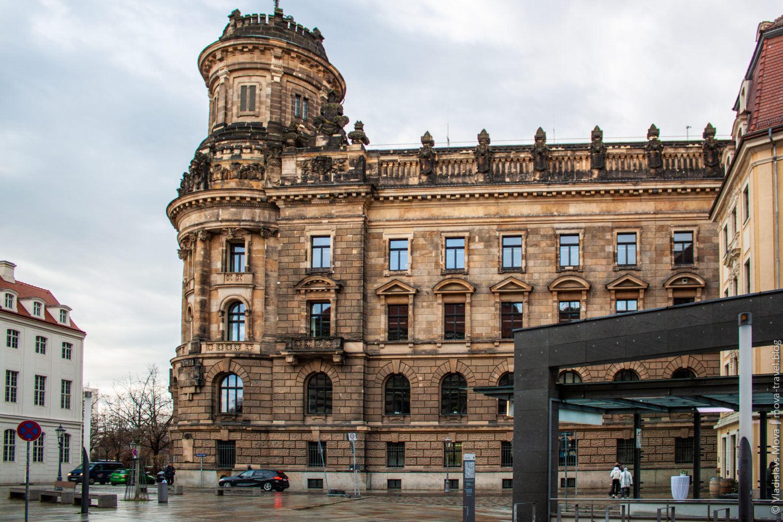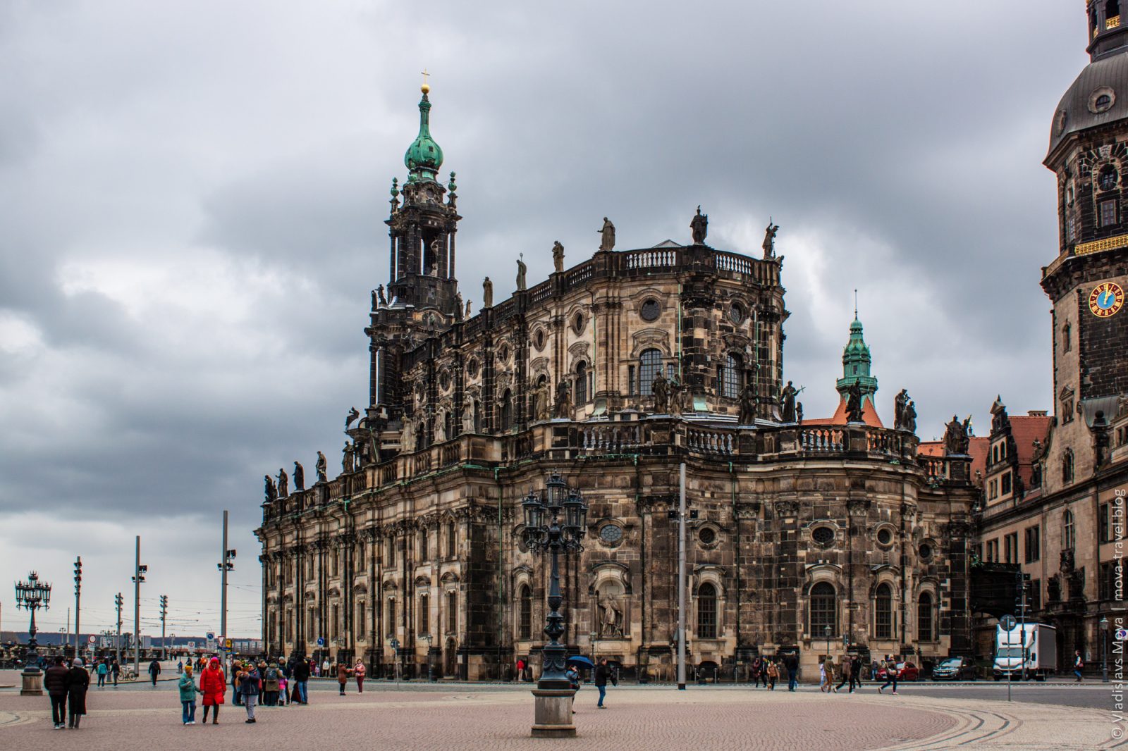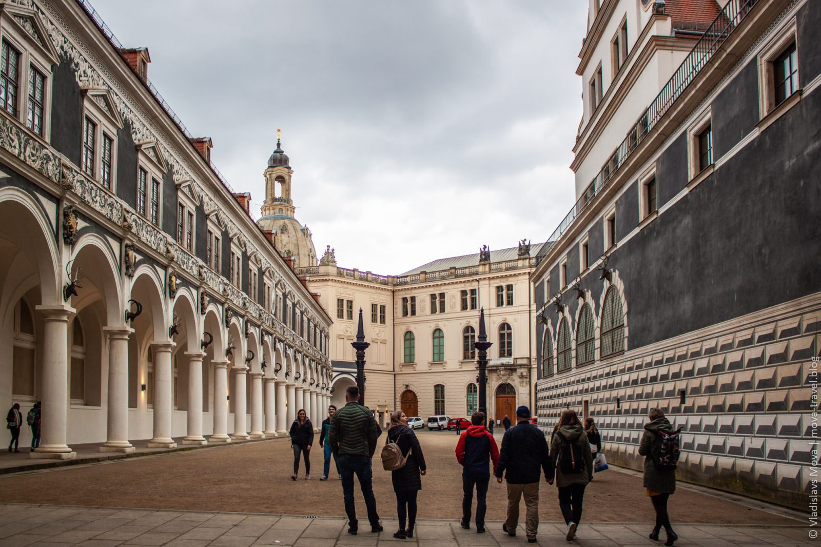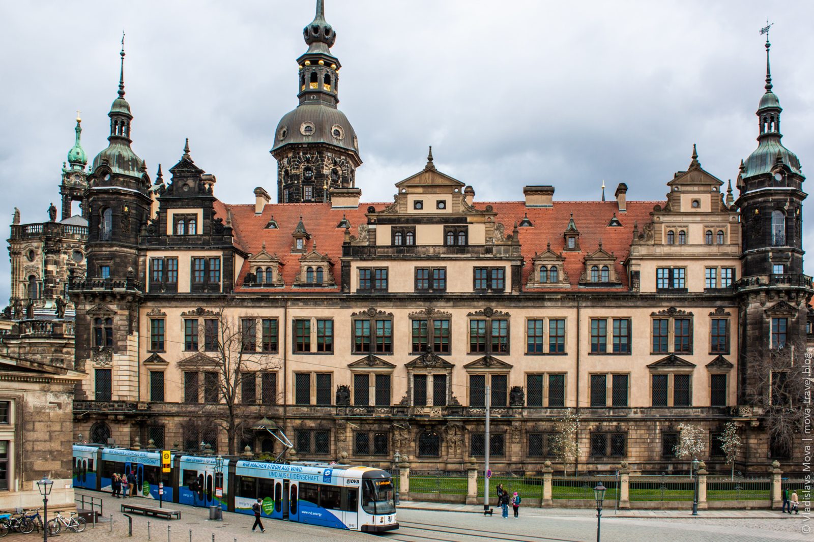 Раз церковь «придворная», то, очевидно, где-то поблизости должен быть и «двор». Так и есть: по соседству располагается Дрезденский замок. К сожалению, посетить его в этот раз не удалось, но снаружи он выглядит не менее интересно.