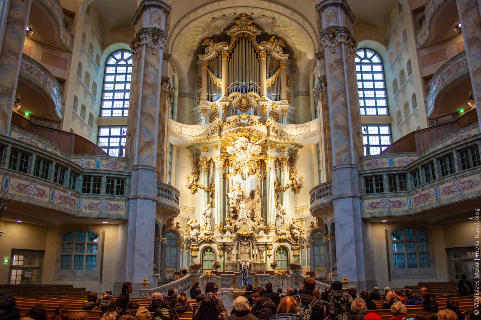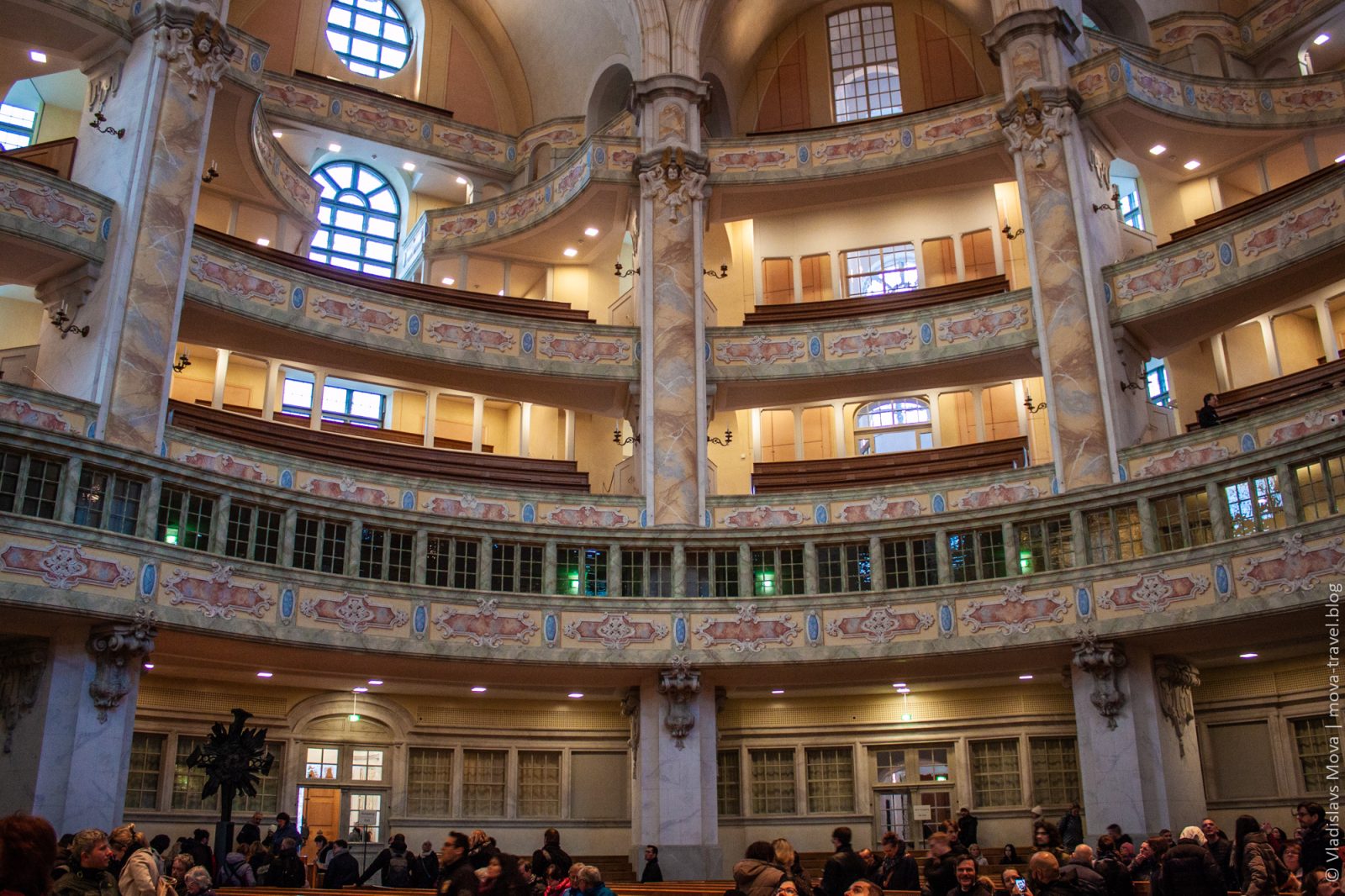 Интерьер церкви поражает воображение своей красотой и роскошью, а нетрадиционные для религиозных сооружений многоярусные балкончики придают ей шарм оперы.