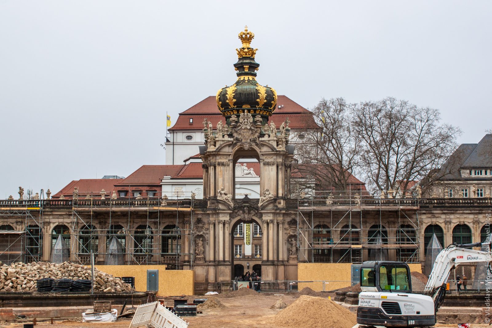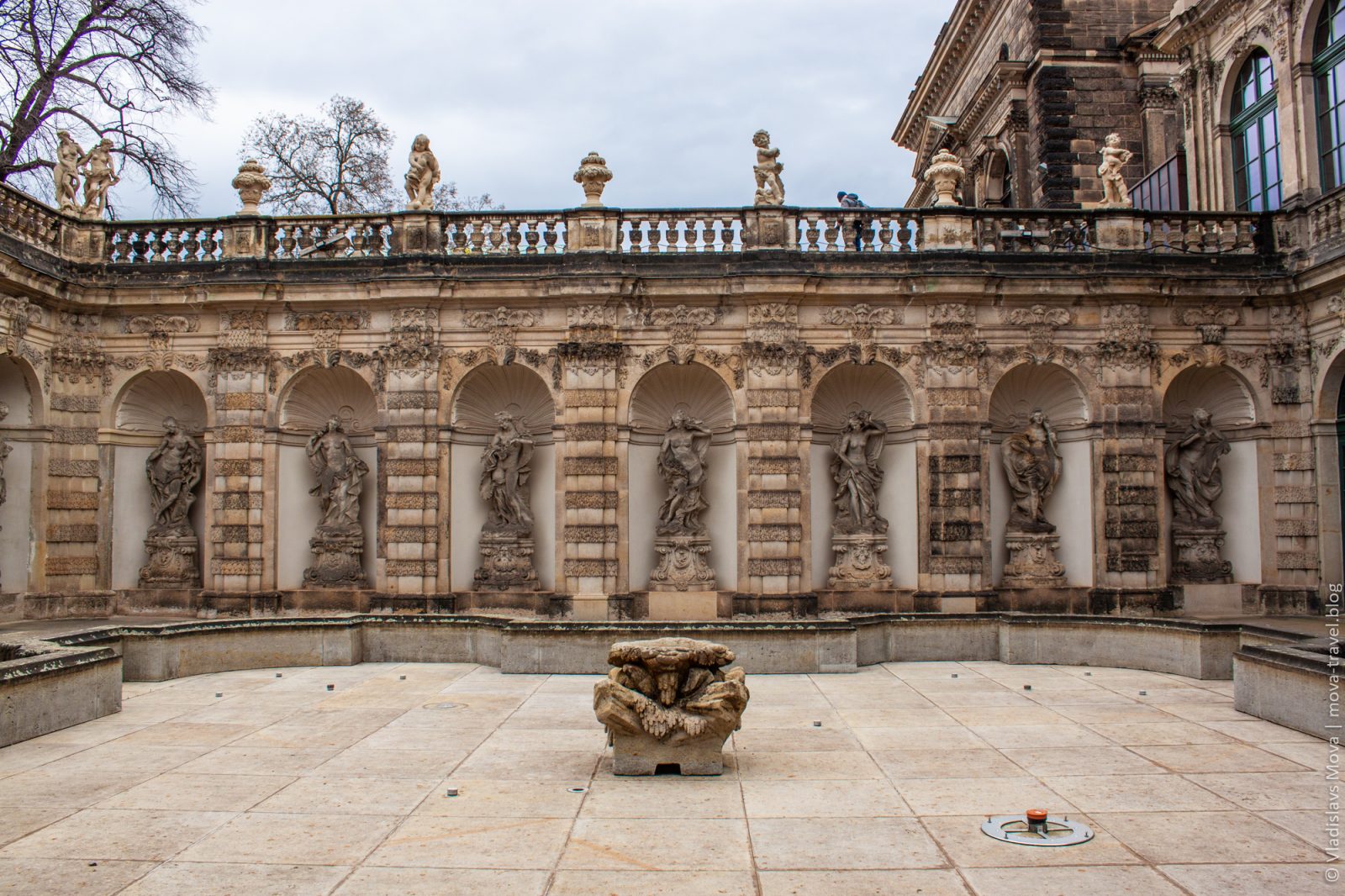 К сожалению, нам немного не повезло, и во время нашего визита во внутреннем дворе Цвингера проходили масштабные строительные работы. Говорят, что в обычных условиях двор отлично дополняет окружающий дворцовый лоск.