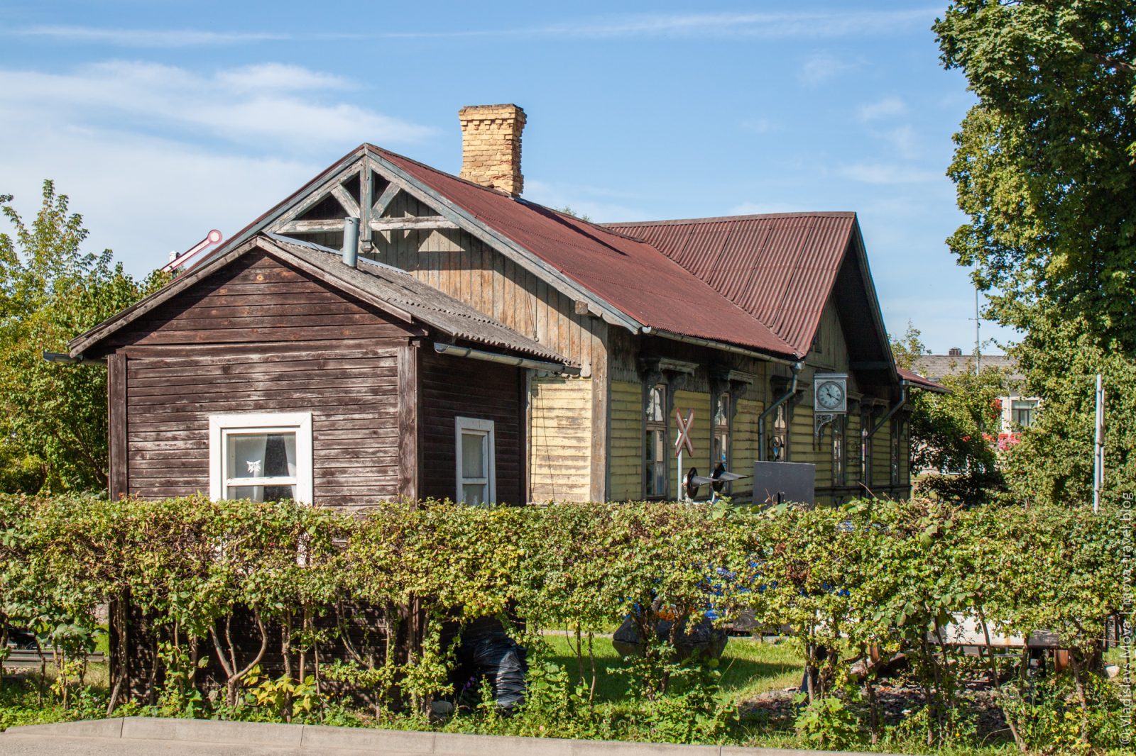Ну а мы прибыли сюда на поезде. В разных источниках пишут, что это – первое и единственное здание елгавского вокзала, сохранившееся до наших дней с момента прокладки железнодорожной линии в 1868 году. Но то ли врут, то ли последний ремонт оказался крайне неудачным (я склоняюсь именно к этому варианту), но на индустриальный памятник с полуторавековой историей оно ну никак не тянет.