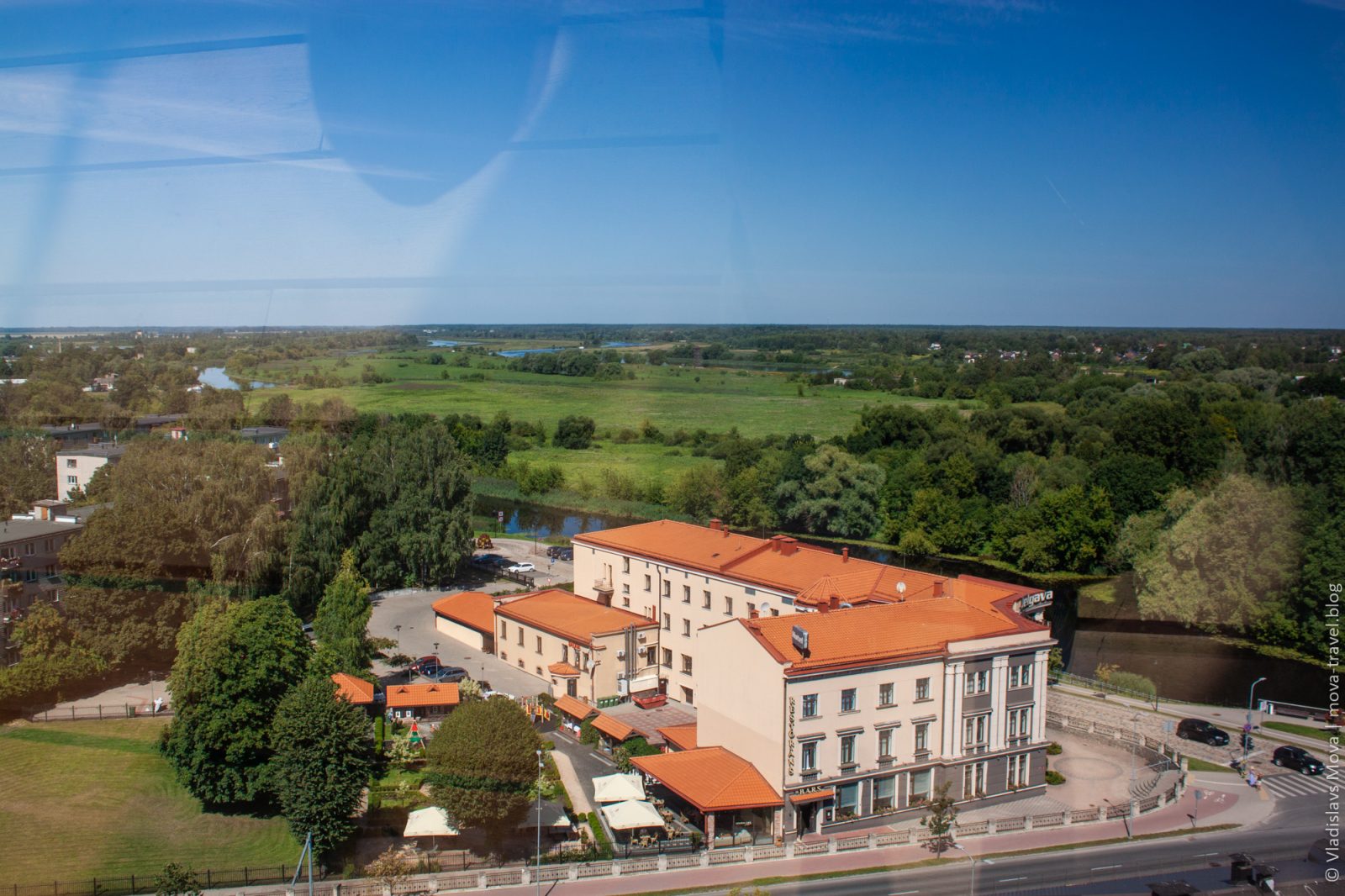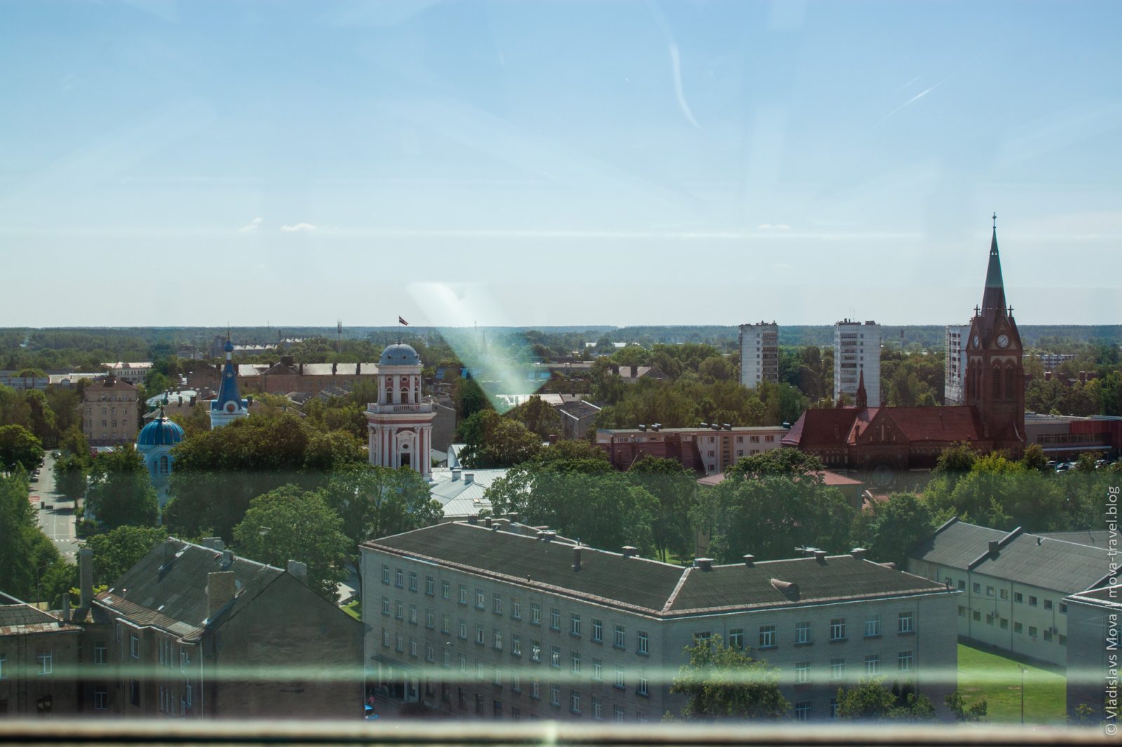 Музейную экспозиция я показывать не буду – она по большей части интерактивная, и передать всю её прелесть на фотоснимках просто невозможно. Зато сама башня увенчана стеклянной крышей, через которую открывается живописный вид на Елгаву.