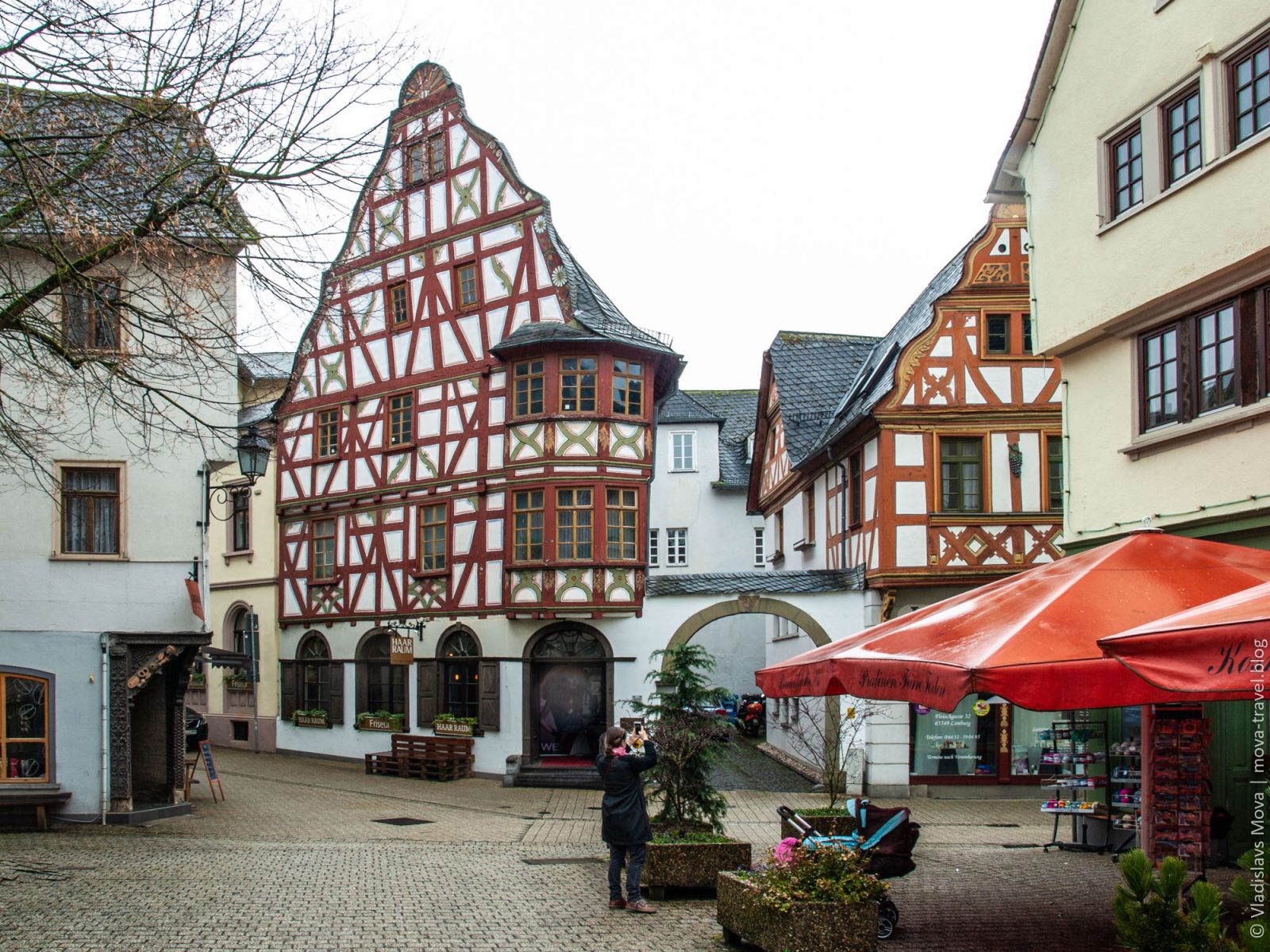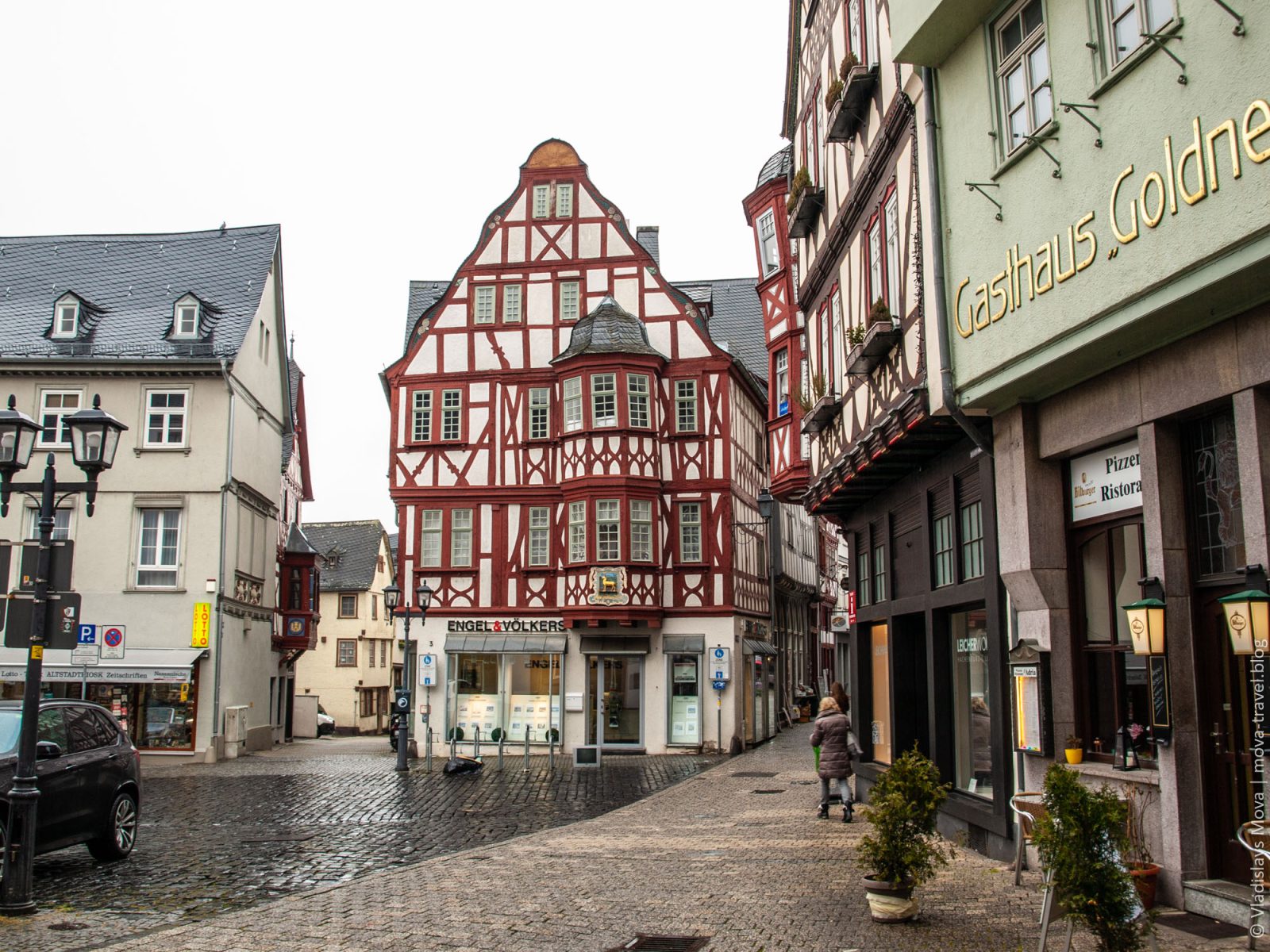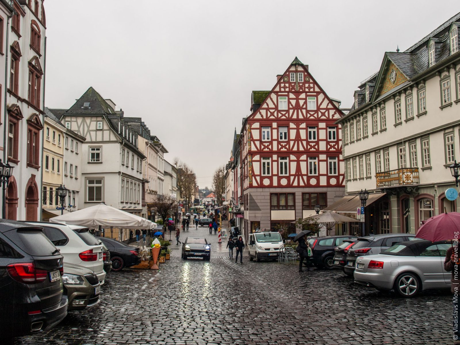 Изначально на карте нашего путешествия было две основные точки: Кобленц и Марбург, а в Лимбург-на-Лане мы даже не планировали заезжать. И в этом нет ничего удивительного, ведь о городе с таким названием мы ни разу и не слышали. Но у автомобильных путешествий есть два больших преимущества перед другими типами туризма: во-первых, можно без особых сложностей добраться в труднодоступные места, а, во-вторых, можно относительно легко корректировать маршрут. Как раз вторая особенность нам и помогла в данном случае: за считаные дни до поездки я стал прокладывать на карте наш маршрут, и, в процессе, увидел, что путь из Кобленца в Марбург (а если точнее, то из Хёр-Гренцхаузена в Лору) пролегает мимо города (одно это уже немаловажно, так как там, в основном, одни деревни вокруг) с приятным названием Лимбург-на-Лане. Я решил уточнить, что это за незнакомое мне место, и уже после первых увиденных снимков принял решение, что нам просто необходимо там побывать! И, конечно же, остался в полном восторге от увиденного: несмотря на то, что на протяжении практически всей прогулки шёл мелкий мартовский дождь, Лимбург-на-Лане впечатлил меня настолько, что и по сей день остаётся в пятёрке наиболее красивых городов Германии, в которых мне доводилось бывать!