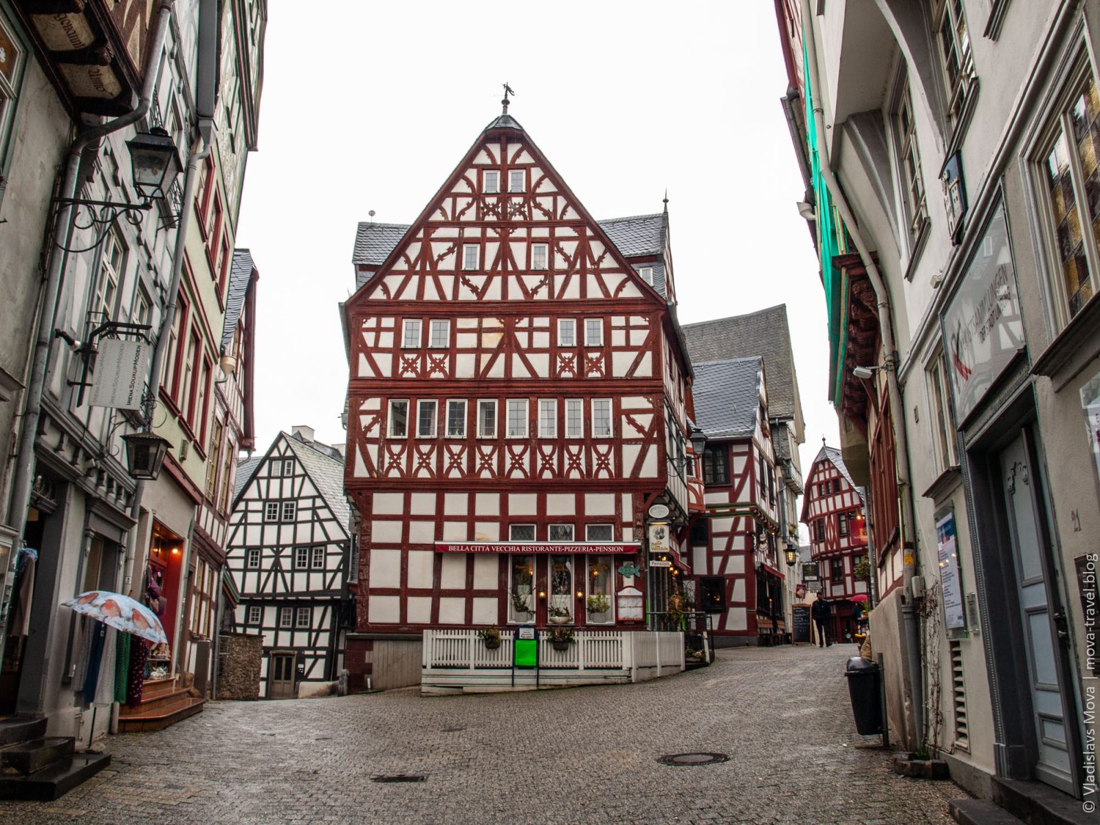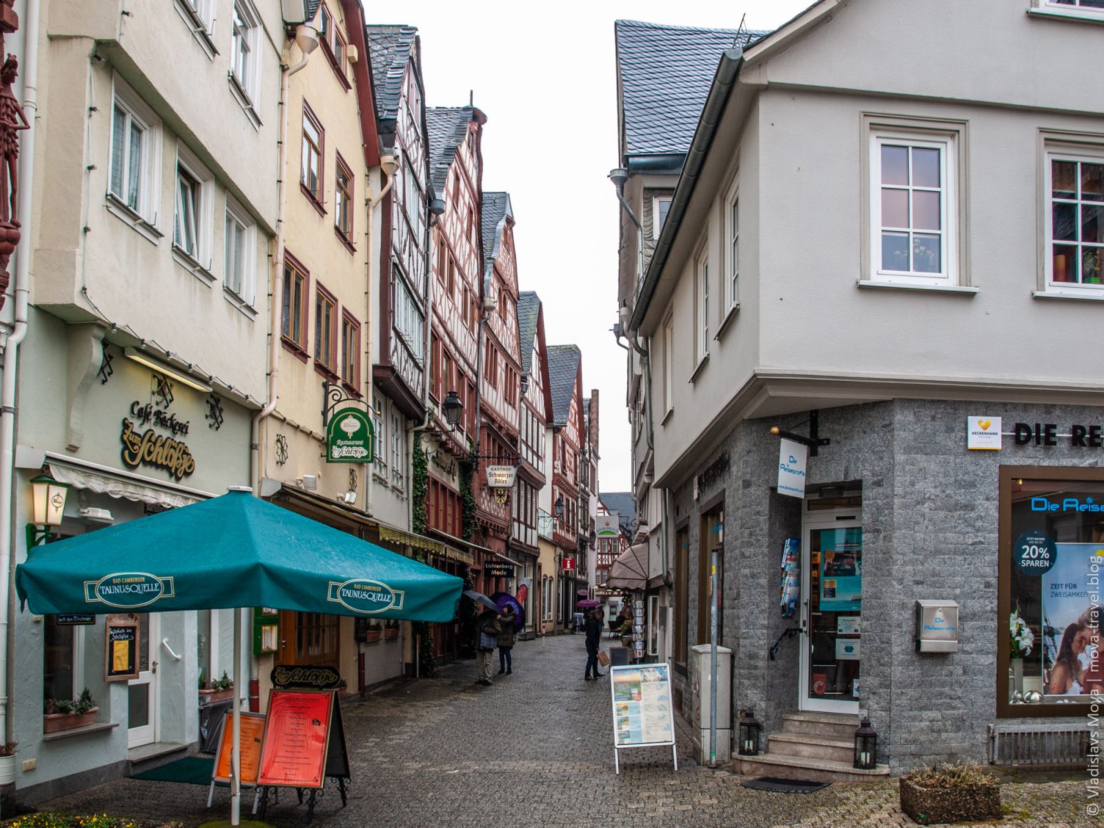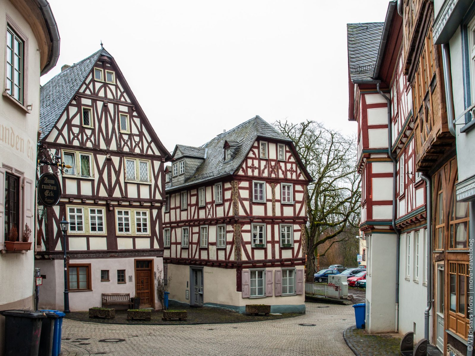 Изначально на карте нашего путешествия было две основные точки: Кобленц и Марбург, а в Лимбург-на-Лане мы даже не планировали заезжать. И в этом нет ничего удивительного, ведь о городе с таким названием мы ни разу и не слышали. Но у автомобильных путешествий есть два больших преимущества перед другими типами туризма: во-первых, можно без особых сложностей добраться в труднодоступные места, а, во-вторых, можно относительно легко корректировать маршрут. Как раз вторая особенность нам и помогла в данном случае: за считаные дни до поездки я стал прокладывать на карте наш маршрут, и, в процессе, увидел, что путь из Кобленца в Марбург (а если точнее, то из Хёр-Гренцхаузена в Лору) пролегает мимо города (одно это уже немаловажно, так как там, в основном, одни деревни вокруг) с приятным названием Лимбург-на-Лане. Я решил уточнить, что это за незнакомое мне место, и уже после первых увиденных снимков принял решение, что нам просто необходимо там побывать! И, конечно же, остался в полном восторге от увиденного: несмотря на то, что на протяжении практически всей прогулки шёл мелкий мартовский дождь, Лимбург-на-Лане впечатлил меня настолько, что и по сей день остаётся в пятёрке наиболее красивых городов Германии, в которых мне доводилось бывать!