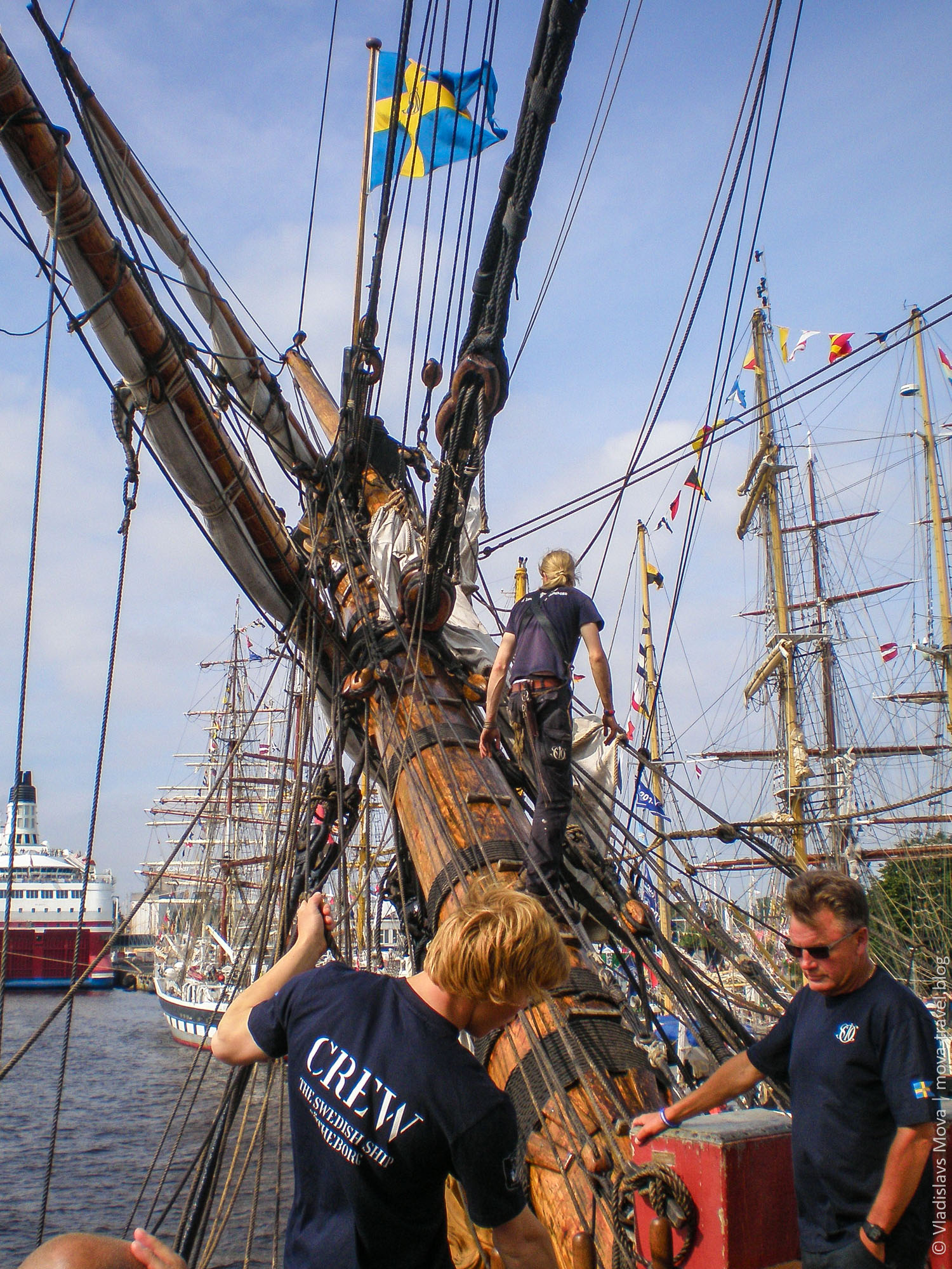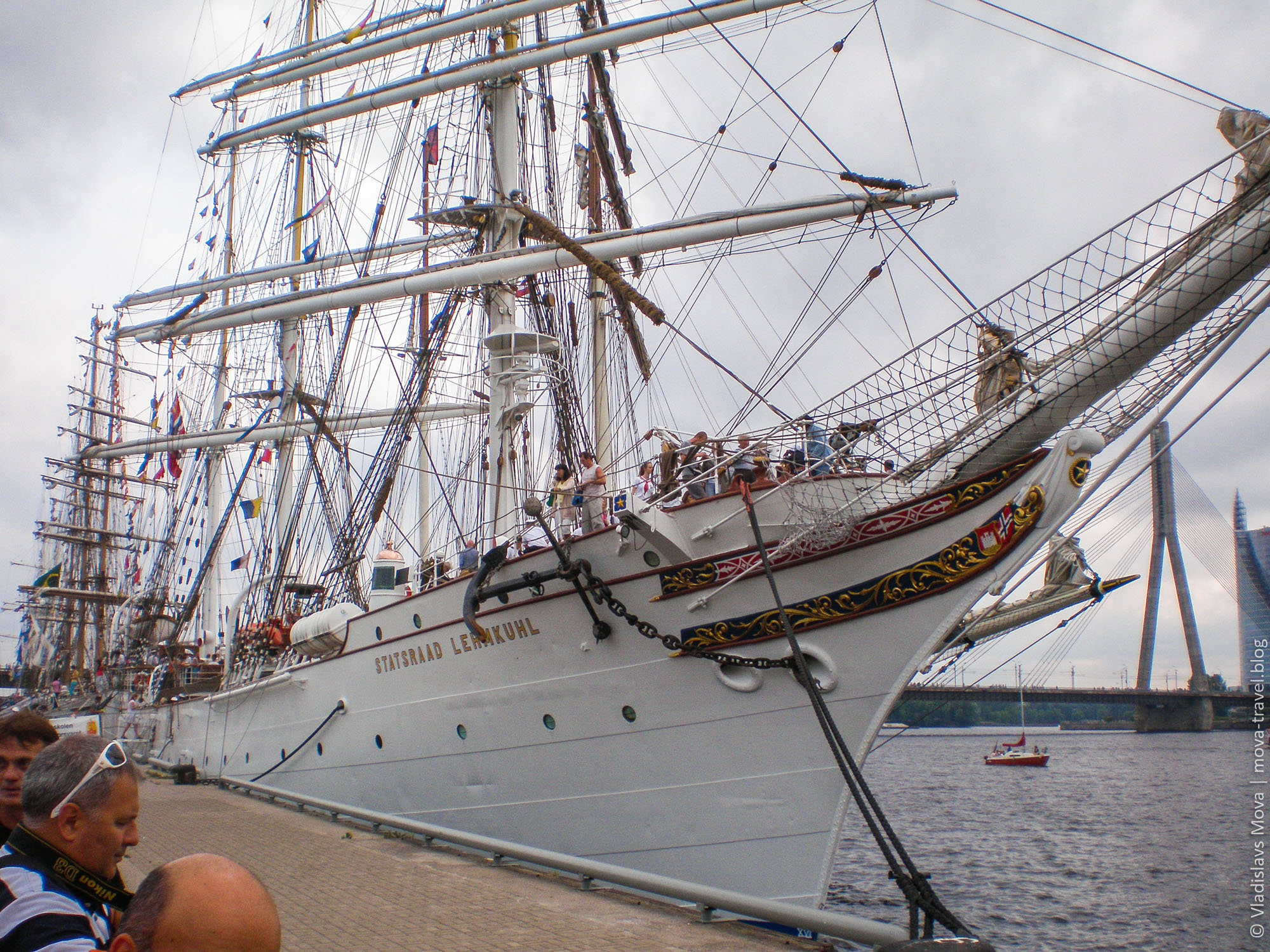 В порту собралось огромное количество зрителей. Многим, чтобы попасть на корабль, приходилось отстоять в очередь пару часов. И это только на одно судно! В общем, ажиотаж в городе был огромный, и, на мой взгляд, регата стала главным культурным событием года во всей Латвии.