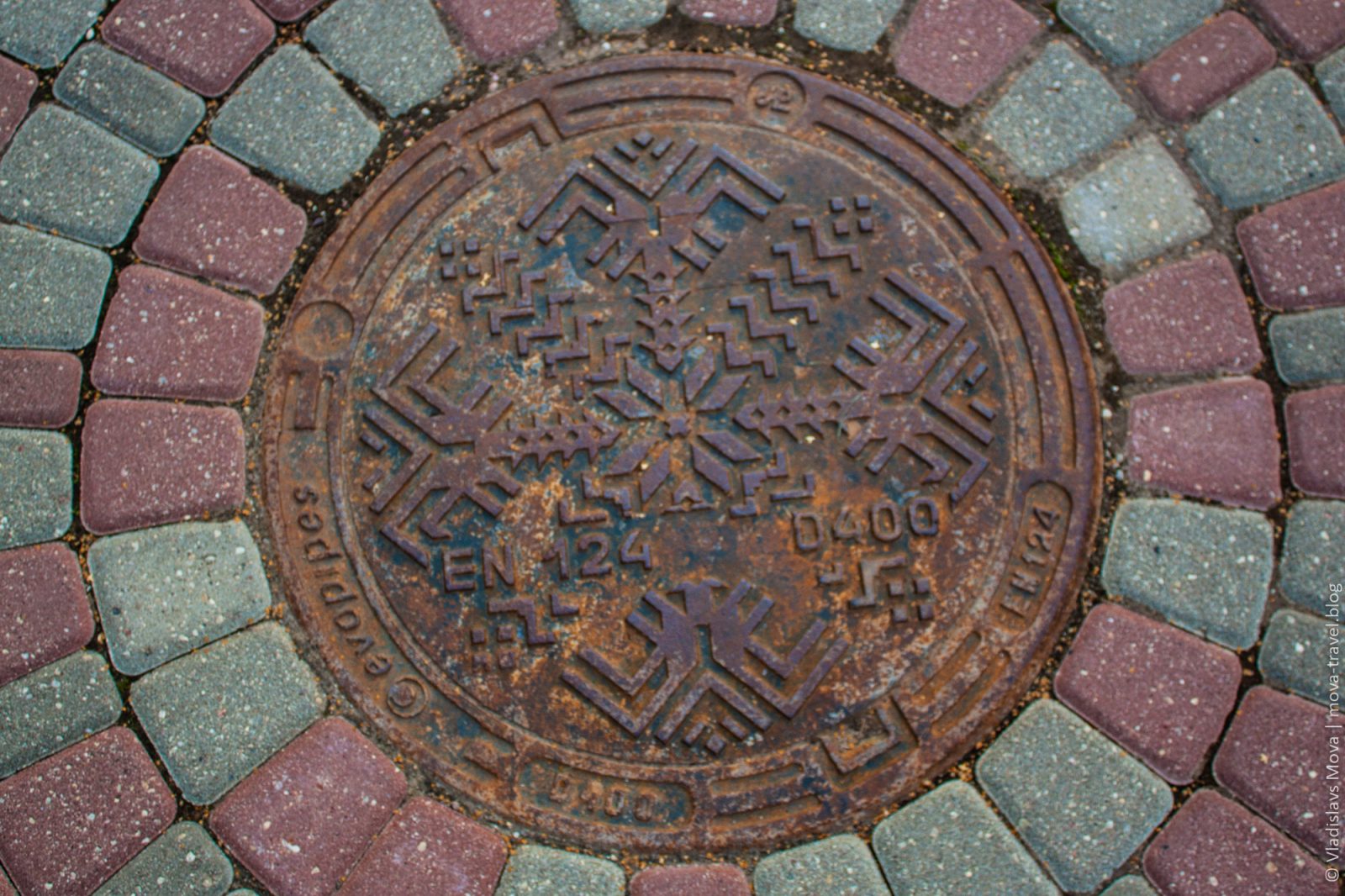 В моей коллекции необычных крышек от люков – пополнение. Визуально определить, что он – именно из Смилтене, по нему, правда, нельзя, но традиционный латышский орнамент присутствует.
